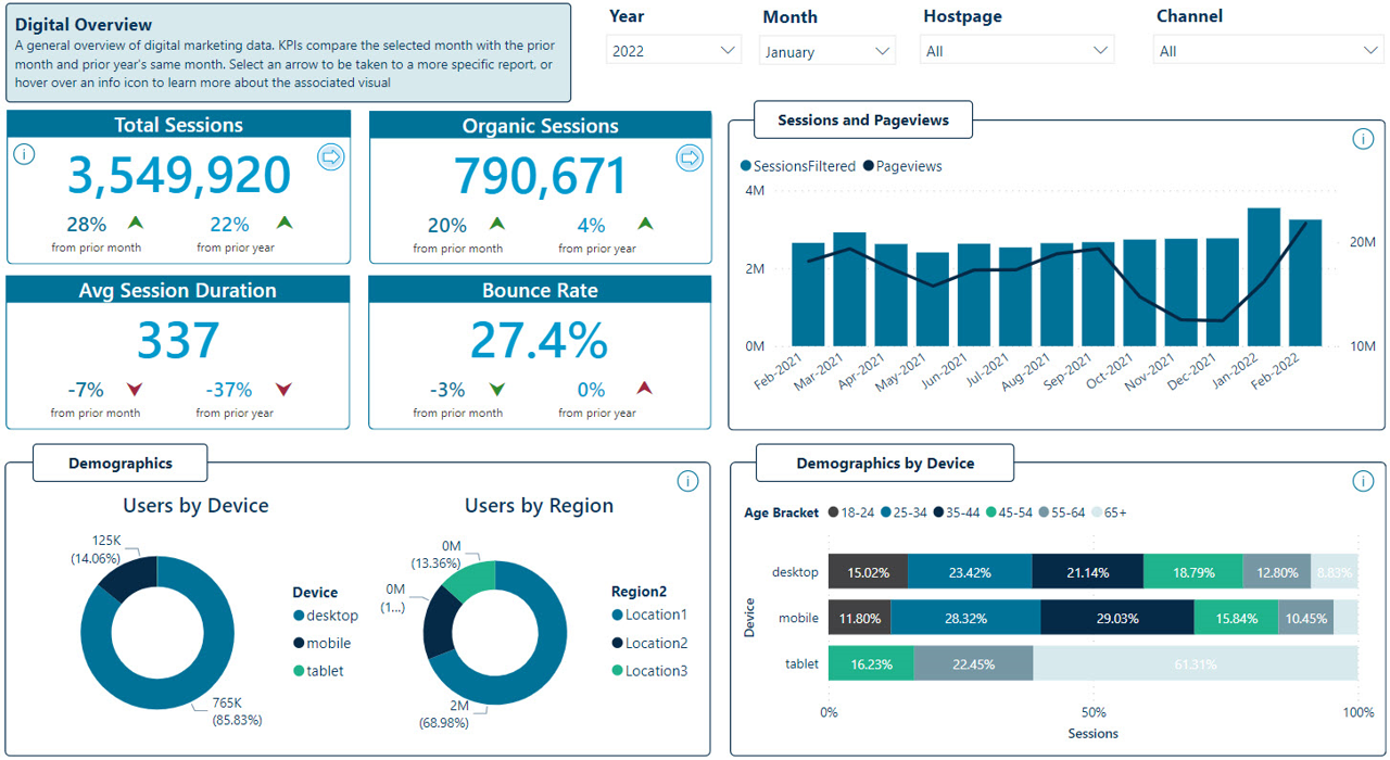 With a repository of existing data and functional systems, our team collaborated with leadership, marketing, and IT to identify what’s valuable and leverageable. Maintaining the client’s use of Microsoft Azure Data Warehouse, we were able to tap into key functionalities to enable advanced business logic and mapping that enriches the integrated data from multiple sources. Fusing the system with Microsoft Power BI facilitated the creation of high-functioning, real-time dashboards in a single, robust portal. The outcome produces clean, accurate visualizations of critical marketing data.